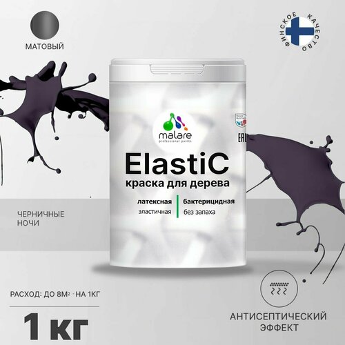 Краска Elastic для деревянных поверхностей, для внутренних и наружных работ, с антисептическим эффектом, матовая, черничные ночи, 1 кг.