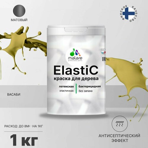 Краска Elastic для деревянных поверхностей, для внутренних и наружных работ, с антисептическим эффектом, матовая, васаби, 1 кг.