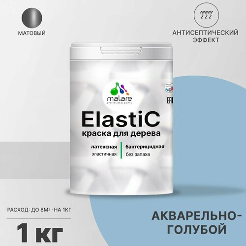 Краска Elastic для деревянных поверхностей, для внутренних и наружных работ, с антисептическим эффектом, матовая, акварельно-голубой, 1 кг.