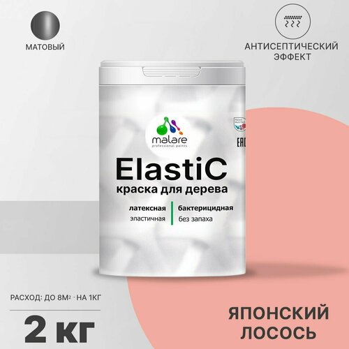 Краска Elastic для деревянных поверхностей, для внутренних и наружных работ, с антисептическим эффектом, матовая, японский лосось, 2 кг.