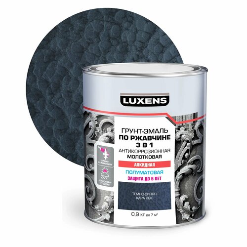 Грунт-эмаль по ржавчине 3 в 1 Luxens молотковая цвет темно-синий 0.9 кг
