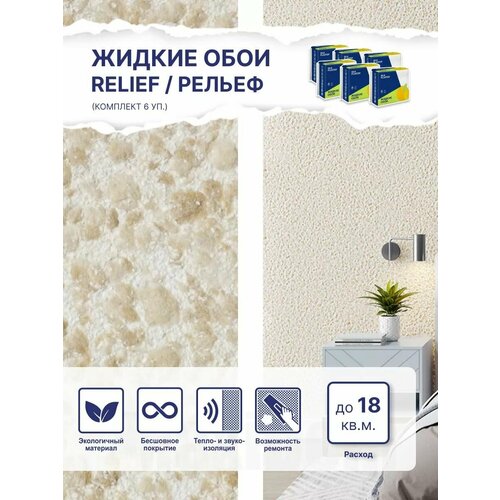 Жидкие обои Silk Plaster Рельеф 322, комплект 6 шт (до 18 кв. м) светло-коричневый