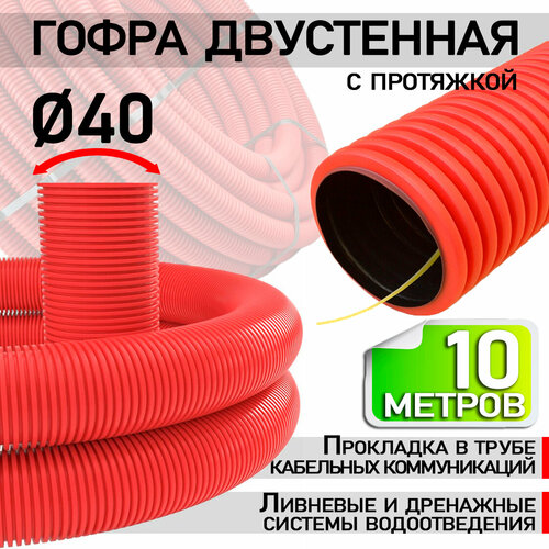 Гибкая гофрированная двустенная труба ПНД Промрукав, с зондом красная PR15.0252, D40, 10 метров