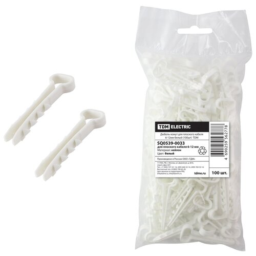 Дюбель-хомут для плоского кабеля 6-12мм белый (100шт) TDM Electric (SQ0539-0033)