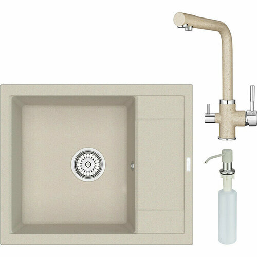 Кухонная мойка и смеситель Point Римо 60 с дозатором, светло-бежевая (PN3010BG, PN3103BG, PN3201BG)