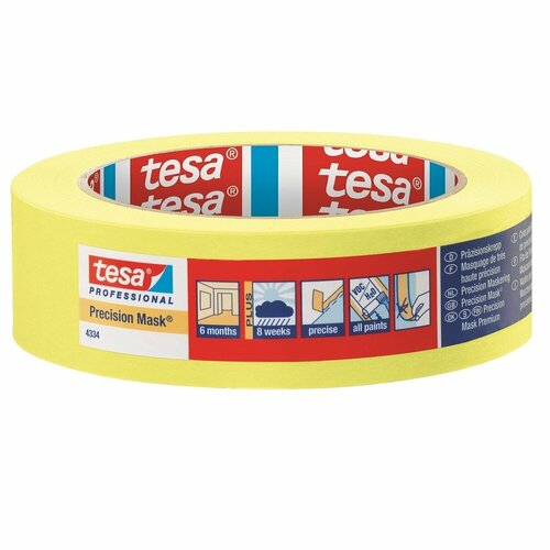 Малярная лента TESA желтая для четких краев, TESA 4334 четкий край, 19 мм х 50 метров (6 месяцев), оригинал - 1 шт