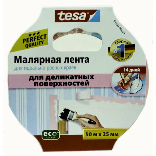 Лента малярная TESA для деликатных поверхностей 25 мм 50 м
