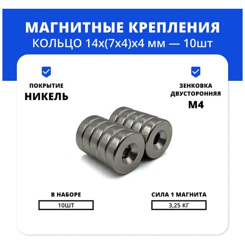 Набор магнитов кольца 14х(7х4)х4 мм с зенковкой (10 шт)
