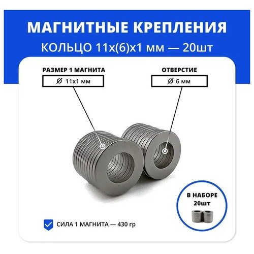 Набор магнитов-креплений кольца 11х(6)х1 мм для украшений и декора (20 шт)