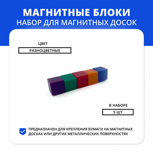 Набор цветных магнитов для доски 10x10x10 мм, 5 шт