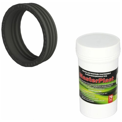 Набор для монтажа пластиковых и канализационных труб, Манжета для канализации 124х110 мм черная + Смазка сантехническая 70гр.