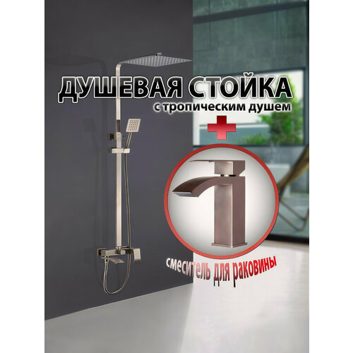 Душевая Стойка EKO ALMAes С Тропическим Душем Цвет Сатин Нержавеющая Сталь GK-0328-1