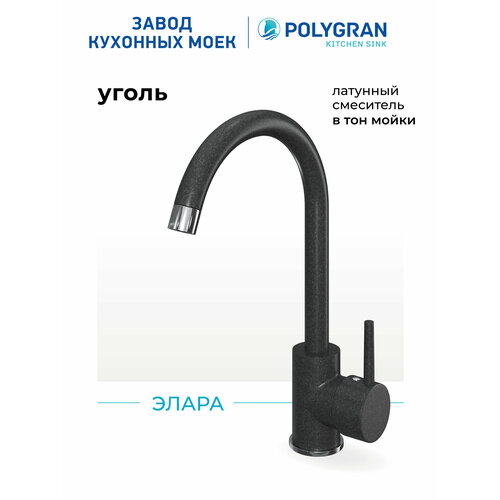 Смеситель кухонный Элара (Уголь) поворотный излив, латунь, гибкая подводка, аэратор