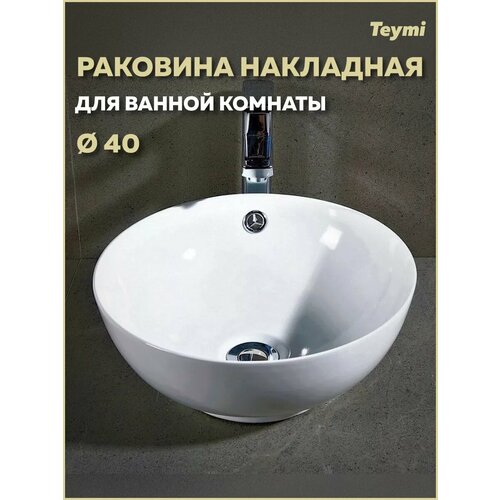 Раковина для ванной круглая накладная Teymi Lina kuppi D40 белая T50103
