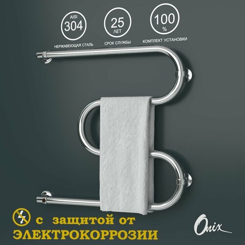 Полотенцесушитель Водяной Onix, модель Hit Turn Chrome Left 600x600, М-образный, Хром, полный комплект, с защитой от электрокоррозии