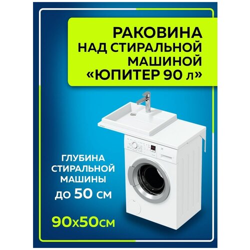 Раковина над стиральной машиной "Юпитер 90*50" левая , без кронштейнов в усиленной упаковке 900128W