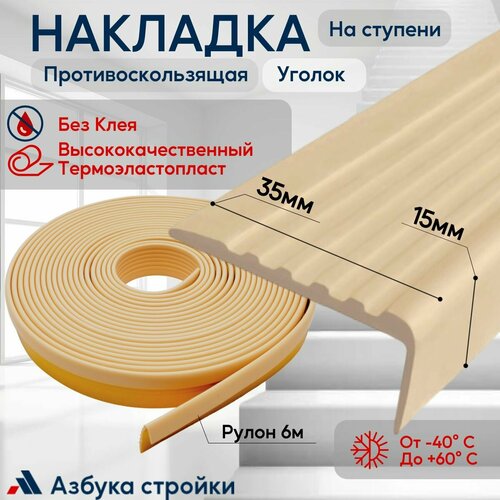 Противоскользящая лента Противоскользящая резиновая накладка угол на ступени без клея 35мм, длина 6м