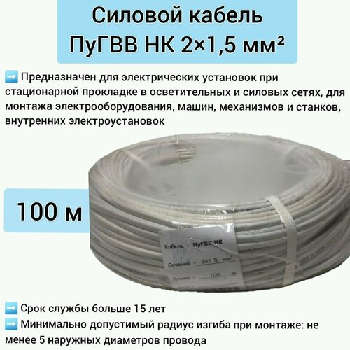 Силовой кабель ПуГВВ НК 2х1,5 кв2, 100 м, в исполнении ТУ