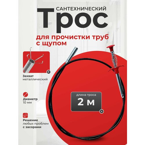 Трос сантехнический 200см с щупом для прочистки труб и удаления засоров.