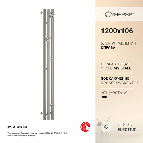 Полотенцесушитель электрический Сунержа Терция 3.0 1200х106 правый Без покрытия
