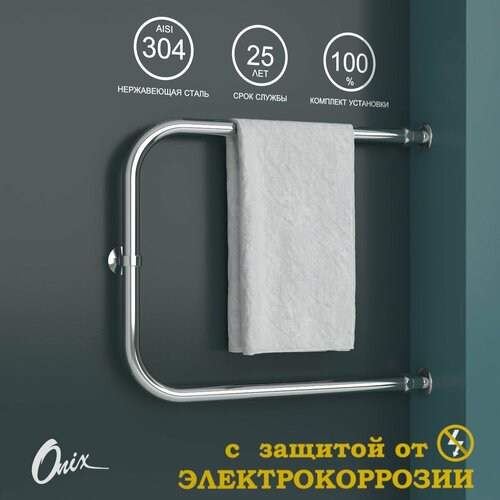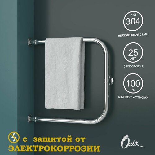Полотенцесушитель Водяной Onix, модель Best Direct Chrome Right 500x600, П-образный, Хром, полный комплект, с защитой от электрокоррозии