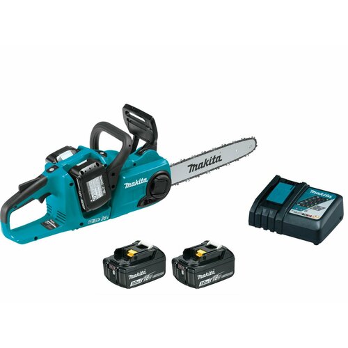 Набор Makita: аккумуляторная цепная пила DUC353Z + 2 аккумулятора 5 Ач BL1850B + зарядное устройство DC18RD, PT966