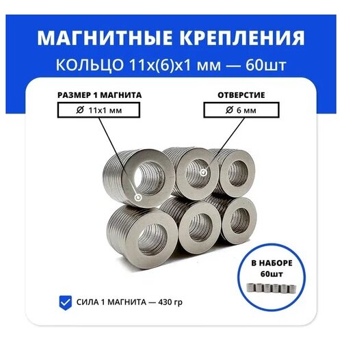 Набор магнитов-креплений кольца 11х(6)х1 мм для украшений и декора (60 шт)