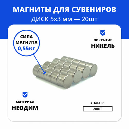 Набор неодимовые магниты 5х3 мм для шкатулок и сувениров — 20 шт