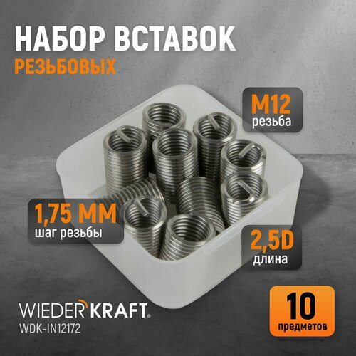 Набор вставок резьбовых M12X1,75, 2,5d, 10 предметов WIEDERKRAFT WDK-IN12172