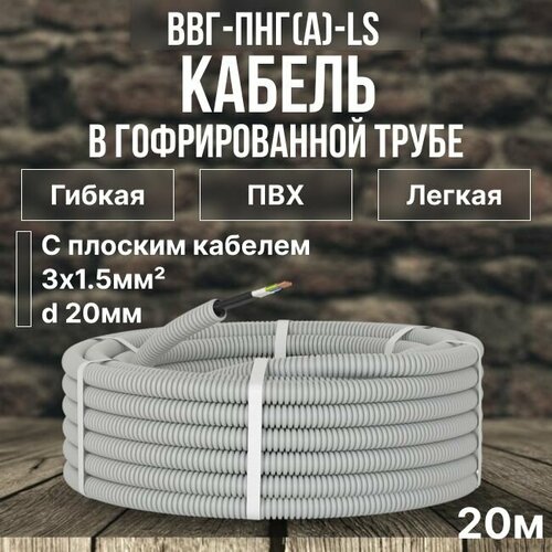 Кабель в гофре DKC Premium ВВГ-Пнг(А)-LS 3х1.5 Конкорд ГОСТ +, ПВХ серая D20 мм - 20м