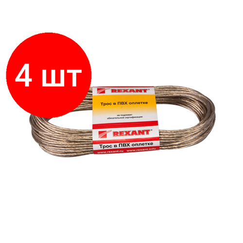 Комплект 4 штук, Трос стальной в ПВХ оплетке d=2.5 мм, прозрачный ( моток 20 м) REXANT (09-5125)