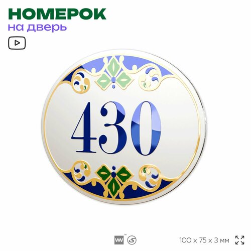 Номер на дверь квартиры 430, для кабинета, офиса, в средиземноморском стиле, шильдик 10 х 7,5 см, белый, Айдентика Технолоджи