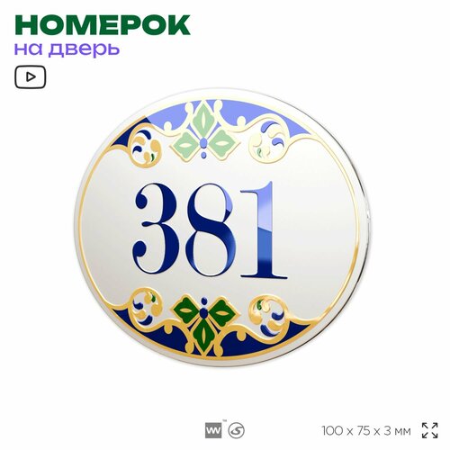 Номер на дверь квартиры 381, для кабинета, офиса, в средиземноморском стиле, шильдик 10 х 7,5 см, белый, Айдентика Технолоджи