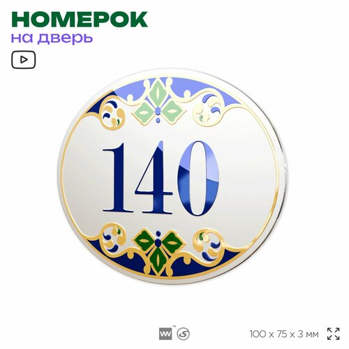 Номер на дверь квартиры 140, для кабинета, офиса, в средиземноморском стиле, шильдик 10 х 7,5 см, белый, Айдентика Технолоджи
