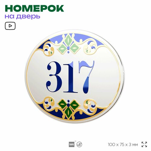Номер на дверь квартиры 317, для кабинета, офиса, в средиземноморском стиле, шильдик 10 х 7,5 см, белый, Айдентика Технолоджи