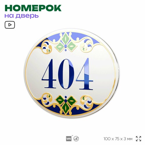 Номер на дверь квартиры 404, для кабинета, офиса, в средиземноморском стиле, шильдик 10 х 7,5 см, белый, Айдентика Технолоджи