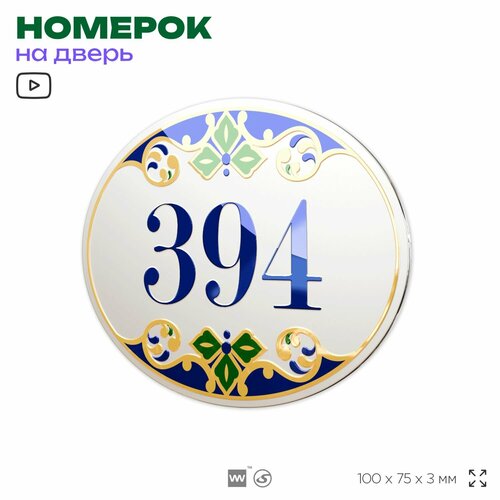 Номер на дверь квартиры 394, для кабинета, офиса, в средиземноморском стиле, шильдик 10 х 7,5 см, белый, Айдентика Технолоджи
