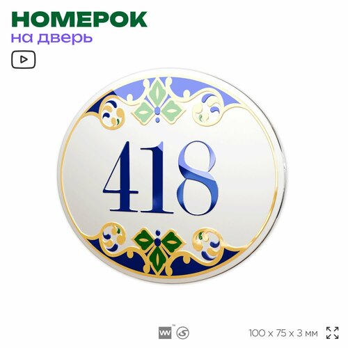 Номер на дверь квартиры 418, для кабинета, офиса, в средиземноморском стиле, шильдик 10 х 7,5 см, белый, Айдентика Технолоджи