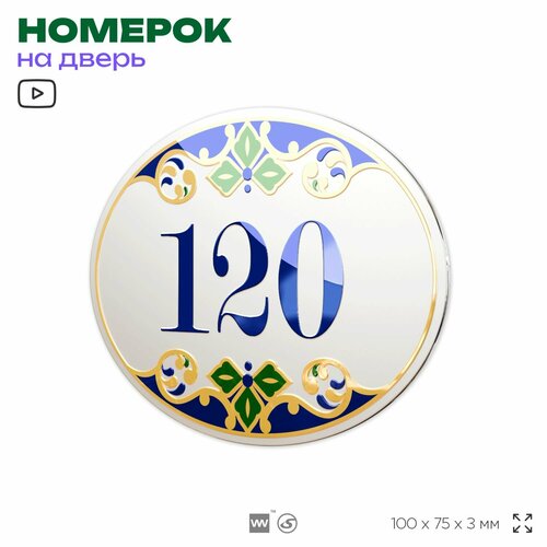 Номер на дверь квартиры 120, для кабинета, офиса, в средиземноморском стиле, шильдик 10 х 7,5 см, белый, Айдентика Технолоджи