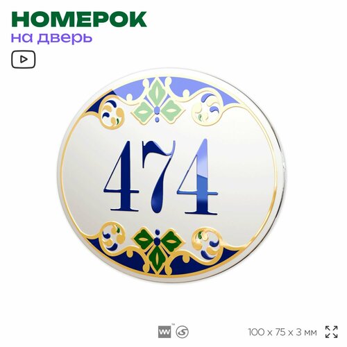 Номер на дверь квартиры 474, для кабинета, офиса, в средиземноморском стиле, шильдик 10 х 7,5 см, белый, Айдентика Технолоджи