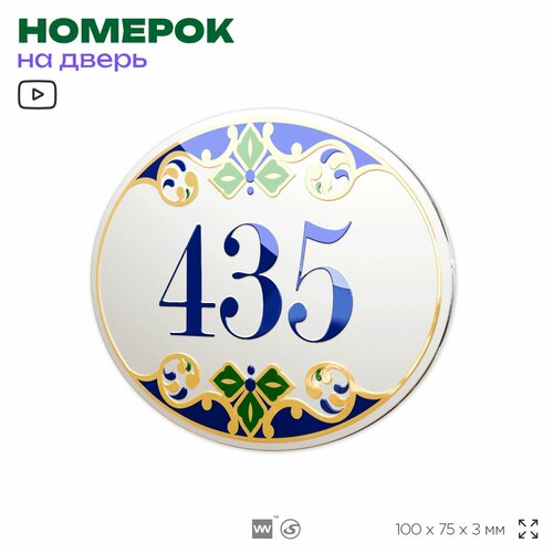 Номер на дверь квартиры 435, для кабинета, офиса, в средиземноморском стиле, шильдик 10 х 7,5 см, белый, Айдентика Технолоджи