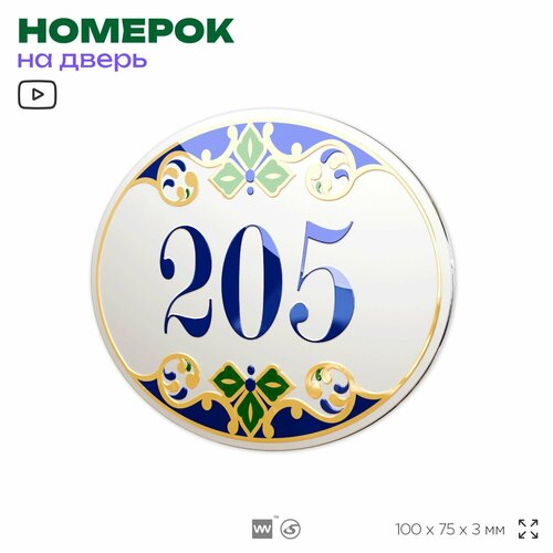 Номер на дверь квартиры 205, для кабинета, офиса, в средиземноморском стиле, шильдик 10 х 7,5 см, белый, Айдентика Технолоджи