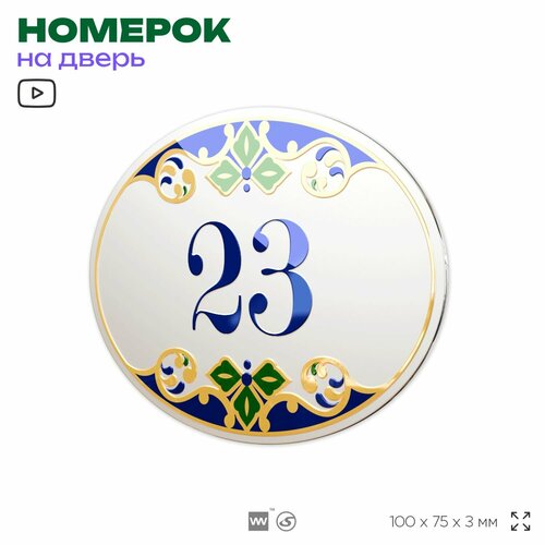 Номер на дверь квартиры 23, для кабинета, офиса, в средиземноморском стиле, шильдик 10 х 7,5 см, белый, Айдентика Технолоджи