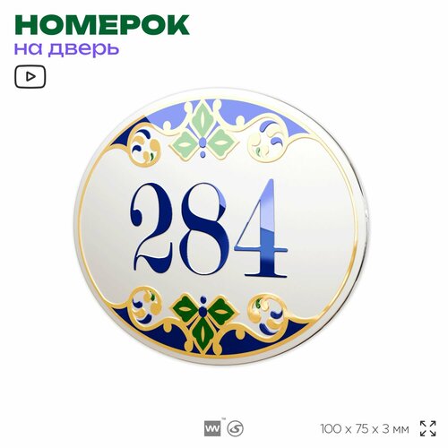 Номер на дверь квартиры 284, для кабинета, офиса, в средиземноморском стиле, шильдик 10 х 7,5 см, белый, Айдентика Технолоджи