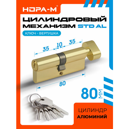 Цилиндровый механизм (личинка замка) с вертушкой Нора-М STD Z ЛВ-80 (40-40), ЦАМ, золото