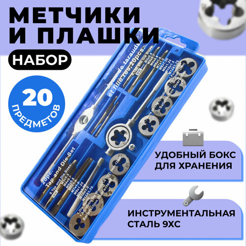Набор метчиков и плашек 20 предметов, метчикодержатель, плашкодержатель