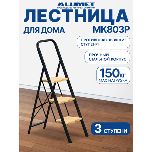 Стремянка стальная Alumet МК803P, 3 широкие ступени, 1,29 м, черная