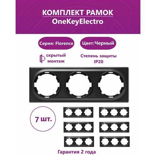 Комплект. Рамка OneKeyElectro тройная, цвет черный (7шт.).