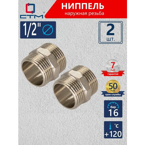 Ниппель 1/2 сантехнический для трубы наружная резьба CTM 2 шт