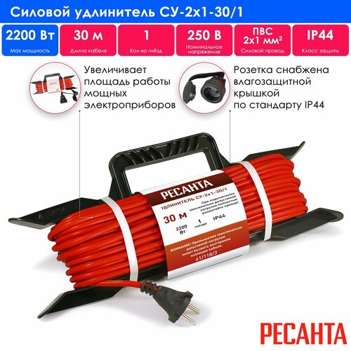 Удлинитель силовой на раме, СУ-2х1-30/1 (IP44) Ресанта